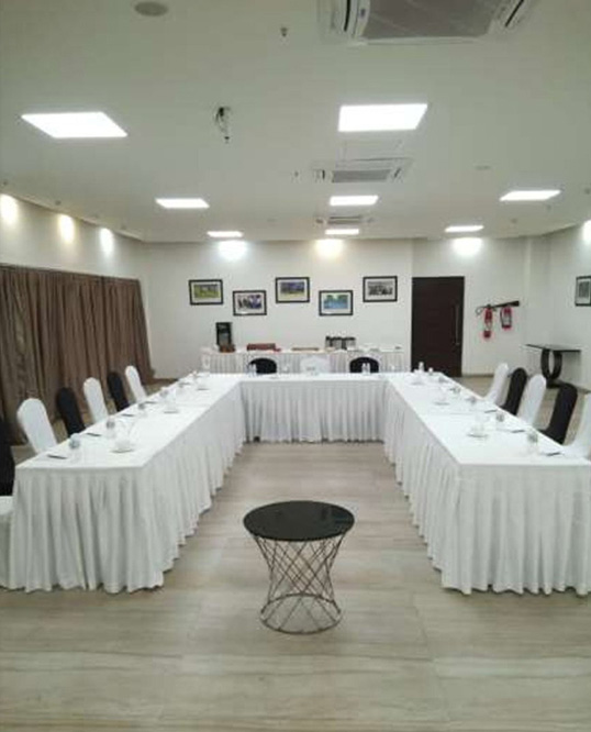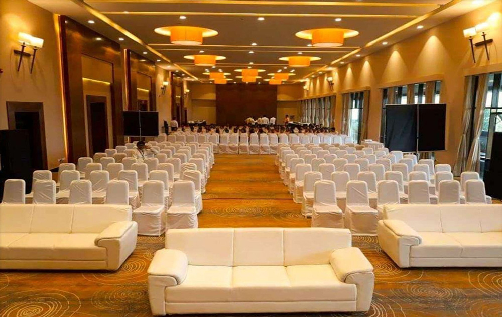 Bougainvillea Hall: The Bougainvillea Hall epitomizes versatility. It is well-suited for business events such as meetings, corporate seminars, and product launches, while easily transforming into an expansive venue for grand celebrations like weddings, birthdays, and anniversaries. The hall accommodates up to 550 guests, complemented by four green rooms and a pre-function area spanning 8000 sq. ft.